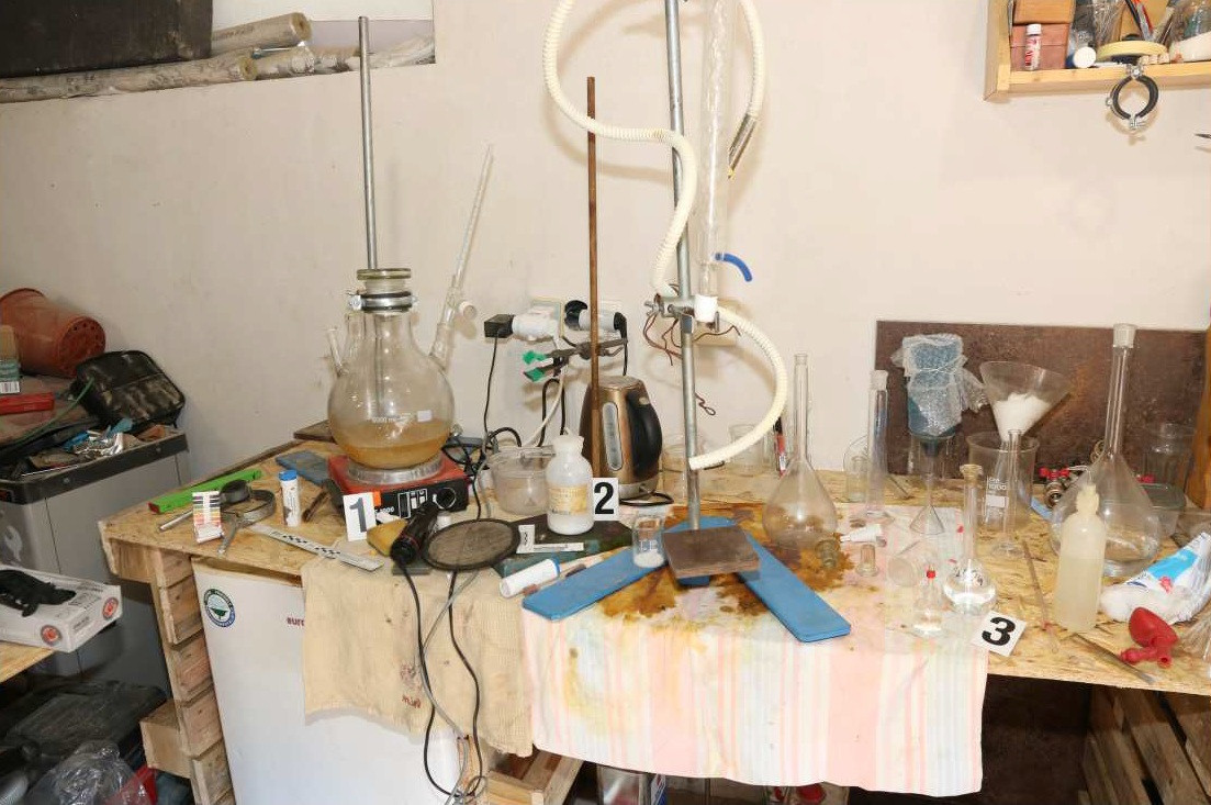 Kriminalisté v garáži objevili laboratorní sklo a chemikálie, například červený fosfor a kyselinu fosforečnou, které se používají k výrobě pervitinu. Muž měl drogu vyrábět pro vlastní potřebu i v několika případech předávat dalším osobám. Za tento přečin mu hrozí trest odnětí svobody na jeden až pět let.