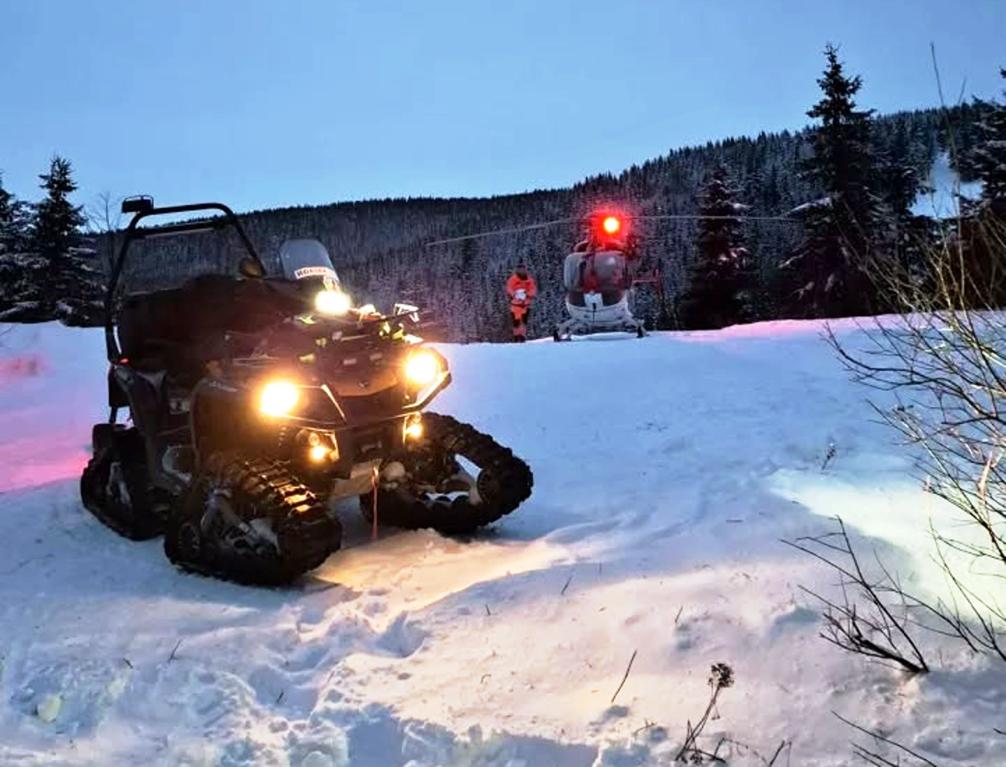 Nejprve vyjížděla posádka Horské služby z Červenohorského sedla k muži na běžkách, kterému se v náročném terénu udělalo nevolno a postupně se u něj objevily varovné bolesti na hrudi. Po předání pacienta posádce Zdravotnické záchranné služby Olomouckého kraje a Letecké záchranné služby Kryštof 09 přišla další výzva.